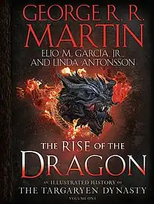 The Rise of the Dragon is a companion book by George R. R. Martin, Elio M. García Jr. and Linda Antonsson describing the history of House Targaryen from Aegon Targaryen's conquest of Westeros to the Dance of the Dragons civil war. It was released on October 25, 2022.[1] In contrast to Fire & Blood, Martin described it as "written in a more encyclopedic style similar to The World of Ice & Fire".[2]