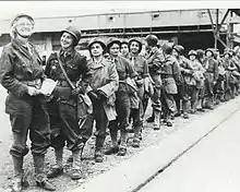 Florence Conrad, Suzanne Torrès and the Rochambelles on the quay at Southampton, ready to cross into France, July 30, 1944. Photo courtesy of the Musée de la Libération.