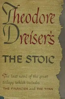 The Stoic is a novel by Theodore Dreiser, written in 1945 and first published in 1947. It is the conclusion of his Trilogy of Desire, which includes The Financier (1912) and The Titan (1914). This series of novels depicts Frank Cowperwood, a businessman based on the real-life streetcar tycoon Charles Yerkes. Dreiser had attempted to complete his trilogy in the early 1930s, but he was unable to begin The Stoic until near the end of his life; he died before he could finish the manuscript, and his widow Helen assembled the novel's final pages.[1]
