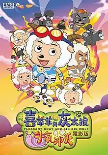 Pleasant Goat and Big Big Wolf: The Super Adventure (Chinese: 喜羊羊与灰太狼之牛气冲天), is a 2009 Chinese animated children's comedy film directed by Sung Pong Choo and William Kan.[4][2] The film was released on January 16, 2009, close to the Chinese New Year holiday. It is the first in a series of films based on the popular Pleasant Goat and Big Big Wolf animated television series and is followed by Pleasant Goat and Big Big Wolf: The Tiger Prowess a year later.