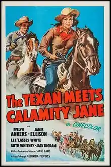 The Texan Meets Calamity Jane also known as Calamity Jane and the Texan in a 1952 re-release, is a 1950 Cinecolor Western movie starring Evelyn Ankers as Calamity Jane and written, produced and directed by Ande Lamb. The film was Ankers' last movie appearance for ten years. Shot at the Iverson Movie Ranch,[1] the cinematography was by Karl Struss.