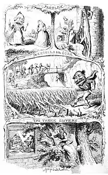 "The Three Sisters"[1] or Green Meadow[2] (Italian: Verde Prato)[3] is an Italian literary fairy tale written by Giambattista Basile in his 1634 work, the Pentamerone. It tells the story of a maiden having secret encounters with a prince with the use of magic, him almost losing his life and her having to search for a cure for him.