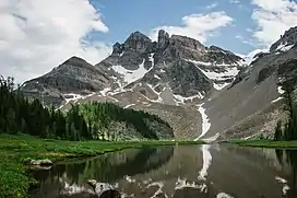 The Towers is a 2,842-metre (9,324-foot) mountain located on the border of Alberta and British Columbia on the Continental Divide. It also straddles the shared boundary of Banff National Park with Mount Assiniboine Provincial Park. It was named in 1917 by Arthur O. Wheeler.[1][2] Its nearest higher peak is Mount Magog, 2.5 km (1.6 mi) to the west.[2]