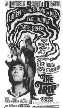 The Trip is a 1967 American psychedelic film released by American International Pictures, directed by Roger Corman and written by Jack Nicholson. It was shot on location in and around Los Angeles, including on top of Kirkwood in Laurel Canyon, the Hollywood Hills, and near Big Sur, California, over three weeks in March and April 1967. Peter Fonda stars as a young man who experiences his first LSD trip.