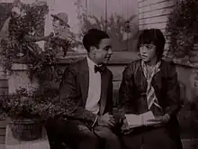 A frame from the small portion of the film that still exists. Hall and Smith are in the foreground; Noble in the upper-left iris shot was the key to the film's rediscovery in 2022.