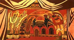 The Moscow premiere was given at the Private Opera Society, the scenic designer being Mikhail Vrubel. St. Petersburg had its premiere two years later at the Mariinsky Theatre with scenic designs by Ivanov and Lambin. Another notable performance was at the Bolshoy Theatre in Moscow, conducted by Emil Cooper (Kuper) and with scenic design by Konstantin Korovin, Golova, and Dyachkov. A film version was released in 1966 directed by Vladimir Gorikker.[3]