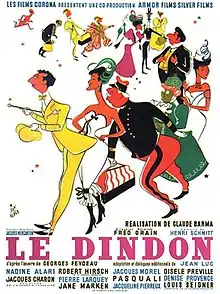 The Turkey (French: Le Dindon) is a 1951 French period comedy film directed by Claude Barma and starring Nadine Alari, Jacqueline Pierreux and Denise Provence.[1][2] It is an adaptation of Georges Feydeau's 1896 play Le Dindon (The Turkey or Sauce for the Goose).[3] It was shot at the Epinay Studios in Paris. The film's sets were designed by the art director Henri Schmitt.