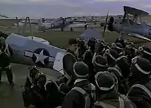 Lt. Glenn and cadets Lee, Roberts and Cappy are on a routine training mission when Cappy's plane begins to experience trouble. Cappy and Lee land on a country road where a prison chain gang are out working in a roadside field. As the planes are coming in to land, the prison guards over the gang force the prisoners out of the way to make room for the planes to land. The guards stand with a mixed look of praise and curiosity when the cadets exit the aircraft; their emotions turn to utter shock when Lee and Cappy take their flight masks off, revealing themselves as black aviators.