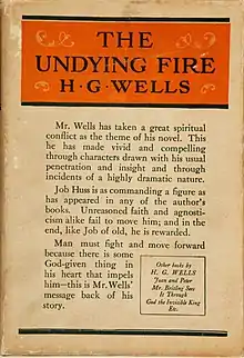 The Undying Fire, a 1919 novel by H. G. Wells, is a modern retelling of the story of Job. Like the Book of Job, it consists of a prologue in heaven, an exchange of speeches with four visitors, a dialogue between the protagonist and God, and an epilogue in which the protagonist's fortunes are restored. The novel is dedicated "to All Schoolmasters and Schoolmistresses and every Teacher in the World."