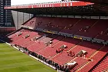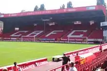 For many years, the Valley was one of the largest Football League grounds in Britain, although its highest maximum capacity of 75,000 was only half the capacity of Glasgow's Hampden Park.[1] However, Charlton's long absence from the top level of English football prevented much-needed renovation, as funds dried up and attendances fell. Charlton were relegated from the First Division in 1957 and did not return until 1986, and in 1972 were relegated to the Third Division for the first time in the postwar era.