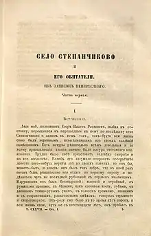 The Village of Stepanchikovo and Its Inhabitants: From the Notes of an Unknown (Russian: Село Степанчиково и его обитатели. Из записок неизвестного, Selo Stepanchikovo i ego obitateli. Iz zapisok neizvestnogo), also known as The Friend of the Family, is a novel written by Fyodor Dostoevsky and first published in 1859.