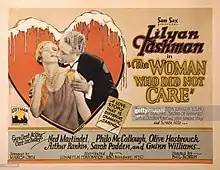 The Woman Who Did Not Care is a 1927 American silent drama film directed by Phil Rosen and starring Lilyan Tashman, Edward Martindel and Philo McCullough.[1]