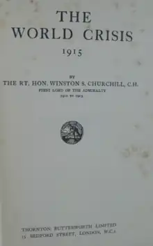 - ↑ The World Crisis by Winston Churchill: A Criticism (1927; Hutchinson & Co, London)