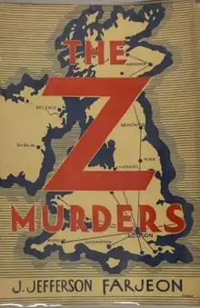 The Z Murders is a 1932 mystery crime novel by the British writer Joseph Jefferson Farjeon.[1] It was originally published by Collins Crime Club, and in 2015 was reissued by the British Library Publishing as part of a group of republished crime novels from the Golden Age of Detective Fiction.