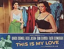 This Is My Love is a 1954 American drama film directed by Stuart Heisler, written by Hugh Brooke and Hagar Wilde, and starring Linda Darnell, Rick Jason, Dan Duryea, Faith Domergue, Connie Russell and Hal Baylor. It was released on November 11, 1954, by RKO Pictures.[1][2][3]