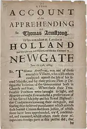 A True Account of the Apprehending of Sir Thomas Armstrong, printed at London, 1684