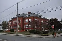 The Thomas Donaghy School is a historic school building at 68 South Street in New Bedford, Massachusetts. It is a two-story brick structure, roughly rectangular in shape, with a truncated hip roof pierced by hip roof dormers. Sections project on the eastern and western facades of the building. The Romanesque Revival-style school was designed by locally prominent architect Samuel C. Hunt, and built in 1905. It is the city's oldest surviving "modern" school building.[2]