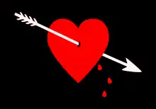 Jolly Roger flag of pirate Thomas Nichols, described as "in his flag a dart and a bleeding heart."