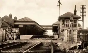 Thornton–Cleveleys (originally simply named Cleveleys) was a railway station in England which served the Lancashire village of Thornton and town of Cleveleys. Located on the now disused line between Poulton-le-Fylde and Fleetwood, the station also had a shunting yard for the making-up of freight trains for Preston and beyond. During its life it was also known at times as Thornton station and Thornton for Cleveleys station.[3][4] In the 1860s and early 1870s the line was of great importance, being the direct route from London to Glasgow. Before the Shap route was opened, passengers (allegedly including Queen Victoria) would travel from Euston to Fleetwood and then onwards via steamer to Scotland.