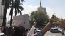 - ↑ "ด่วน! ชาว 'เมียนมา' ชู 3 นิ้วบุกประท้วงหน้าสถานทูต ต้านรัฐประหารในประเทศ". Bangkok Biz News (in Thai). 1 February 2021. Archived from the original on 1 February 2021. Retrieved 1 February 2021.