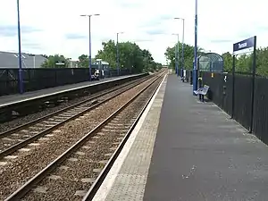 Thurnscoe railway station serves a village of Thurnscoe in South Yorkshire, England. It is located on the Wakefield Line 15 miles (24 km) north of Sheffield railway station. Only stopping services call at the station. It was opened as a new station on 16 May 1988.[1] The station was built by British Rail.