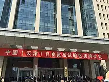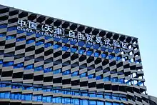 Tianjin Free-Trade Zone (Tianjin FTZ, colloquially known as 天津自由贸易区/天津自贸区 in Chinese), officially China (Tianjin) Pilot Free-Trade Zone (Chinese: 中国(天津)自由贸易试验区; pinyin: Zhōngguó (Tiānjīn) Zìyóu Màoyì Shìyànqū) is a free-trade zone in Tianjin, China. It is the only free-trade zone in North China.[1][2] The zone covers three areas — Tianjin Airport Economic Area, Dongjiang Free Trade Port Zone and Binhai New Area Central Business District.[3][4]