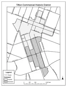 2. 1 2 3 4 Carolyn Brooks (November 26, 1985). "National Register of Historic Places Inventory/Nomination: Tifton Commercial Historic District". National Park Service. Retrieved August 31, 2016. with 21 photos from 1984