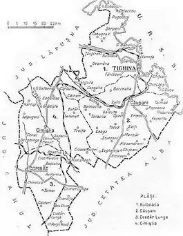 The area of the county was occupied by the Soviet Union in 1940 and became part of the Moldavian SSR. The area returned to Romanian administration as the Bessarabia Governorate following the Axis invasion of the Soviet Union in July 1941. A military administration was established and the region's Jewish population was either executed on the spot or deported to the Transnistria Governorate, where further numbers were killed.[2] As the Soviet Union's offensive pushed the Axis powers back, the area again was under Soviet control. On September 12, 1944, Romania signed the Moscow Armistice with the Allies. The Armistice, as well as the subsequent peace treaty of 1947, confirmed the Soviet-Romanian border as it was on January 1, 1941.[3][4] The area of the county, along with the rest of the Moldavian SSR, became part of the independent Republic of Moldova.