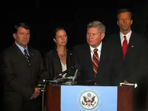 Johnson was, however, among the minority of senators to vote against the Unborn Victims of Violence Act, which was strongly supported by anti-abortion groups.[34] While a member of the House, he was one of only 16 congressmen to vote against the Telecom Act of 1996, which provided for deregulation and competition in the communication sector and was given firm support by Republicans, business groups, and most Democrats.[35]