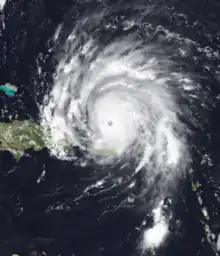 - ↑ Hurricanes reaching Category 3 (111 miles per hour (179 km/h)) and higher on the 5-level Saffir–Simpson wind speed scale are considered major hurricanes.[5]