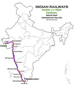 2. "Hapa-Tirunelveli train to run twice a week". Indian Express. 28 April 2010.