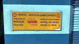1. "Tirupati–Vasco Da Gama Express and Hyderabad–Vasco Da Gama Express Trains to be Introduced". Secunderabad: South Central Railway zone. 25 December 2016. Retrieved 4 February 2017.
