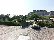 In January 1957, he proposed and executed for the city of Cartagena Las Botas Viejas, a monument in honor of the Cartagena poet Luis Carlos López, in allusion to his poem entitled "A mi Ciudad Nativa".[2] The sculpture stood in Cartagena until the mid-1990s, when it was demolished to make way for a bridge. His brother, Héctor, recreated the sculpture and placed it by Castle San Felipe de Barajas.[3]