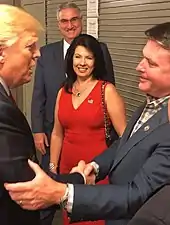 During his time in Congress, Rokita voted in line with President Donald Trump 90.3% of the time.[91] During the Republican primary for the 2018 United States Senate election in Indiana, Rokita earned the support of the chair and vice chair of 2016 Trump campaign in Indiana.[92]