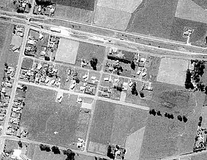 The Makerua Swamp was to the north west of the railway, where 11 mi (18 km) of tramway had been laid by 1903.[13] There were also many other flax mills in the area,[14] six being within a mile of the station in 1906.[15] Swainson & Bevan had a tramway to the station,[12] operating from about 1899[16] to 1909.[17]