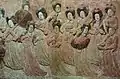 Painted on two marble reliefs, a group of servants and a fifteen-member ladies' orchestra.[2] It provides information about the musical tastes of the upper classes during the late Tang dynasty.