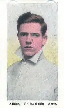 Francis Montgomery "Tommy" Atkins (December 9, 1887 – May 7, 1956) was a pitcher in Major League Baseball. Atkins made one start for the Philadelphia Athletics in 1909 and a further 15 appearances (four starts) during 1910.[1] According to the 1911 Reach Guide, Atkins had a key pitch called the "fingernail fling".[2]