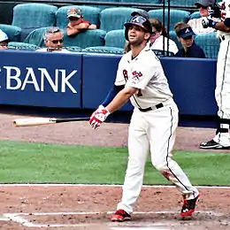 The Braves invited La Stella to spring training in 2014.[11][12] He began the 2014 season with the Gwinnett Braves of the Class AAA International League, and debuted at the major league level on May 28, hitting two singles in his first game.[13] La Stella hit his first major league home run on August 8, 2014, against Stephen Strasburg of the Washington Nationals.[14] He finished the year with a .251 batting average in 93 games.[15]