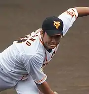 Tomoyuki Sugano (菅野 智之, Sugano Tomoyuki, born October 11, 1989) is a Japanese professional baseball pitcher for the Yomiuri Giants of the Nippon Professional Baseball (NPB).