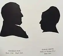 Edward Fox (1719–1782) was married to Anna Were (1722–1788), whose family had long been established as textile manufacturers in Wellington in the county of Somerset. Their son, Thomas (17 January 1747 – 29 April 1821) became a partner in his grandfather Thomas Were's firm, Were and Co., and married Sarah Smith, the daughter of Thomas Smith, a London banker. They had 15 children, of whom seven sons and three daughters survived to adulthood.[6]