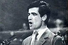 His first entry in Festivali i Këngës was in its fourth edition in 1965, where he would win first prize performing "Të dua o det", a song composed by Tonin Harapi with lyrics from Mark Gurakuqi.[4] After this win, he was barred from participating in the event in the future, his return being allowed only after an intervention from Petrit Dume.[5]