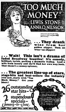 Too Much Money is a 1926 American silent romantic comedy film directed by John Francis Dillon and starring Lewis Stone and Anna Q. Nilsson.[1][2]