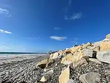 Torrey Pines State Beach is a public beach located in the San Diego, California community of Torrey Pines, south of Del Mar and north of La Jolla. Coastal erosion from the adjacent Torrey Pines State Reserve makes for a picturesque landscape. It is a local favorite among surfers and remains a quintessential Southern California beach. Occurrences of bioluminescence in the waters near the beach have been noted.[1]