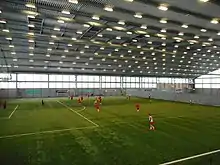 The main feature is a fully enclosed, international-sized artificial turf pitch engineered to the highest specifications available at the time. The dimensions of the playing field are the same as Celtic Park.[4] There is also a raised visitor area featuring a snack bar and bench seating for 700 spectators. There are three full-sized, FIFA-approved 2-star floodlit outdoor artificial pitches outside. The primary outdoor pitch was re-laid in late 2018 after a decade of constant use.[5]