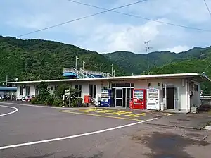 The station is located in the centre of what used to be the municipality of Saga which has now been merged into the town of Kuroshio.
