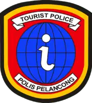 The Tourist Police Unit (Malay: Unit Polis Pelancong) is a specialised unit of the Royal Malaysian Police which provide tourist and visitors information on law, customs, culture and attractions in the local community. Tourist Police uniforms are dark blue with a white peaked cap. Badges worn on left pocket also feature an "i", symbolising the international code for "information".[1]