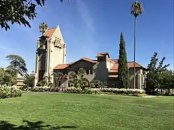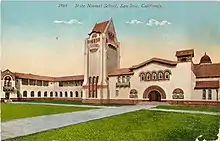 The third building, today known as Tower Hall, was built in 1910 along with a connected complex of buildings that housed the entirety of the California State Normal School. Most of the connected buildings were demolished in 1964 due to earthquake safety concerns, creating what is today known as the quadrangle. However, Tower Hall survived after extensive protest by alumni and students and was restored in 1966, and again in 2007.[4][5] Today the building continues its role as both a classroom and auditorium.
