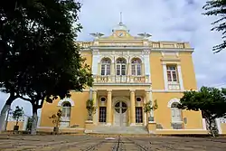 The Town Hall of São Félix (Portuguese: Paço Municipal de São Félix) is an 18th-century municipal building in São Félix, Bahia, Brazil. São Félix was a district of Cachoeira, a municipality across the Paraguaçu River, during the Portuguese colonial period of Brazil. It experienced a boom in tobacco production in the late 19th century and became the largest producers of cigars in Brazil. Accordingly, São Félix was separated from Cachoeira and became an independent municipality in 1889. It was elevated to the level of city in 1890 and required a municipal administration building. The structure of the current town hall was the home of Líno Corrector until March 1890. It was purchased by the German-Brazilian cigar factory owner Geraldo Dannemann (born Gerhard Dannemann, 1851-1921) to adapt into a town hall. The building was a replica of a palace in Berlin. The municipal council inaugurated the town hall on December 20, 1890. The building is located in the Historic Center of the city. The structure has two stories; its façade is divided into three parts with a balcony at center and clock above.[1][2]