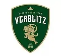 Toyota Verblitz is a Japanese rugby union team in the Japan Rugby League One. Verblitz is a portmanteau of verde (Spanish and Portuguese for 'green') and blitz (German for 'lightning'). The team is owned by Toyota Motor Corporation and is not to be confused with the Toyota Industries Shuttles rugby team, owned by Toyota Industries. It shares Toyota Stadium in the city of Toyota, Aichi with the football club Nagoya Grampus which also used to be owned by Toyota Motors.