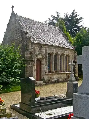 This Gothic style building has an elegant door decorated with two angels bearing inscriptions, one in French, the other in Breton. This translates as "Cursed be those who speak ill and